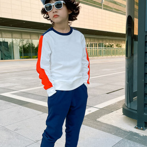 82625 中大童秋季 新款圆领拼接撞色运动卫衣套...