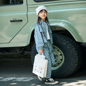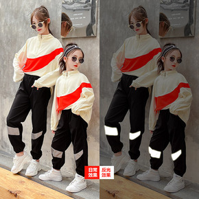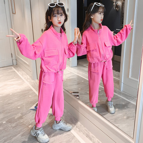 女童套中大童休闲大口袋立领两件套2021秋装新款拉...