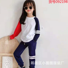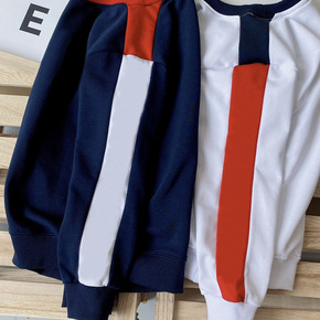 83022 中大童秋季 新款圆领大方块 撞色运动卫...