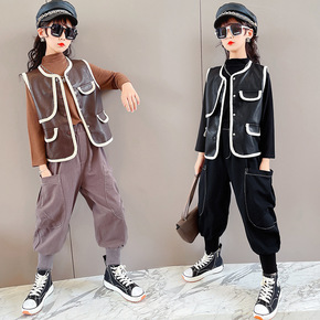 女童网红套装春秋2021新款韩版潮儿童洋气皮马甲三...