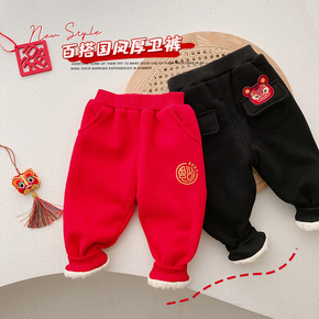 儿童虎头加绒裤子0-6岁男童洋气过年衣服女童福字喜...