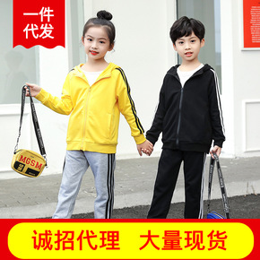 三条杠男大童男童秋装套装2022新款女童童装批发儿...