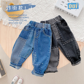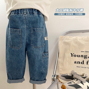 风之谷2022春季新款童裤男童韩版纯色牛仔裤潮范儿...