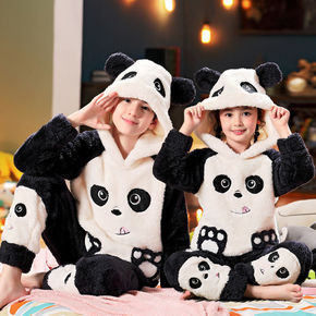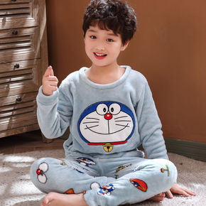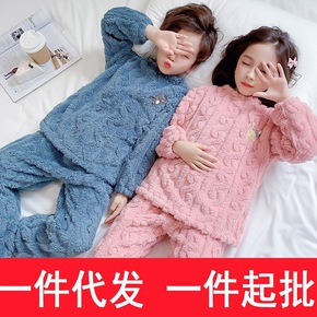 男童女童睡衣冬季珊瑚绒小孩中大童法兰绒加厚加绒保暖...