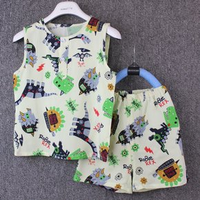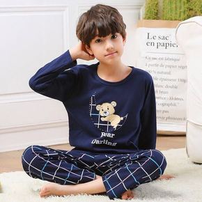 男童睡衣纯棉长袖春秋季儿童男孩中大童家居服夏薄款套...