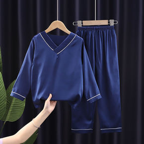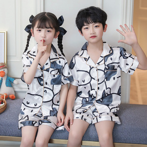 儿童睡衣女夏季短袖男童冰丝薄款套装亲子母女中大童男...