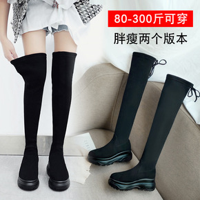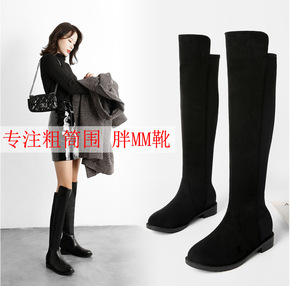 大码女靴41一43胖腿mm弹力长靴加绒马丁靴女加大...
