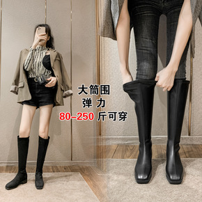 2021骑士靴粗腿白色长靴子胖mm大码女靴妹妹大筒...