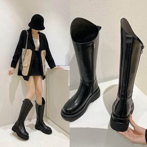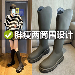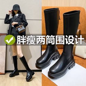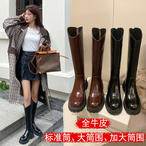 大小三种加宽筒围胖MM牛皮厚底骑士靴2022冬季新...