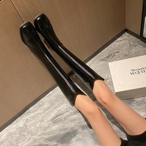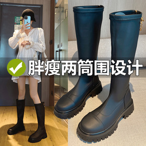 2022春秋季新款粗跟大筒围裤管靴骑士靴长筒靴女鞋...