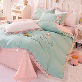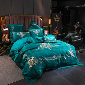 法式轻奢高精密真丝纯棉四件套全棉刺绣被套欧式床上用...