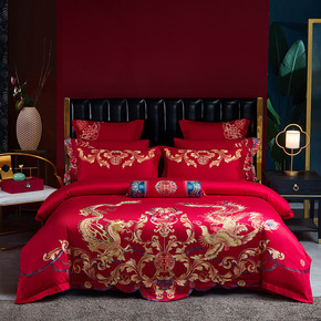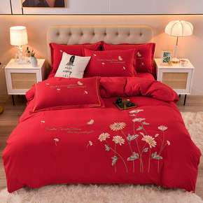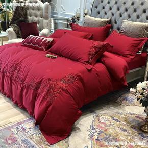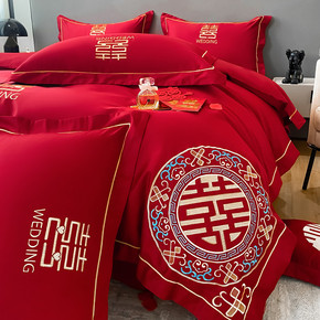 婚庆新房大床上用品床品刺绣纯棉喜四件套婚庆全棉红色...