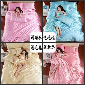 裸睡双面冰丝四件套纯色1.0m三件套仿真丝滑床单双...