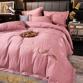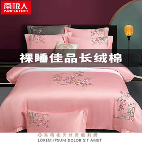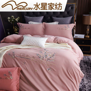 水星家纺纯棉四件套120支全棉加厚磨毛套件刺绣绣花...