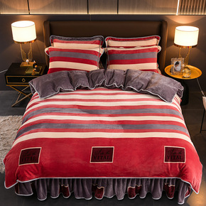 一件代发ins冬季加厚保暖水貂绒四件套云貂绒珊瑚水...