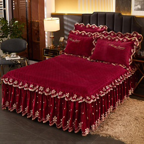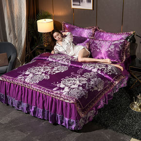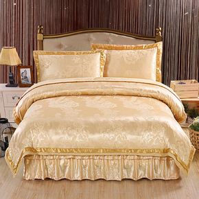夹棉床笠棉贡缎提花四件套棉床罩床裙款加厚欧式婚庆床...
