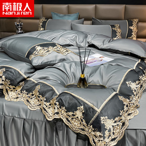 2022新款欧式蕾丝贡缎提花磨毛四件套莫代尔床单款...