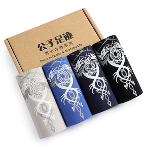 新款兔年大红男士平角内裤男抗菌裆本命年卡通四角裤青...