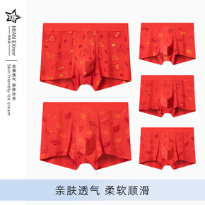 本命年大红男士内裤60支莫代尔无痕中腰平角裤结婚喜...