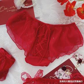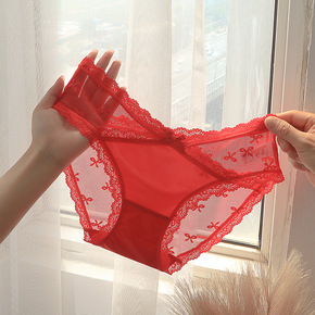 红内裤本命年女生虎年大红纯棉舒适少女学生性感蕾丝网...