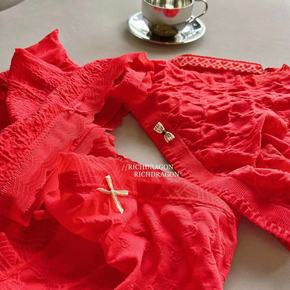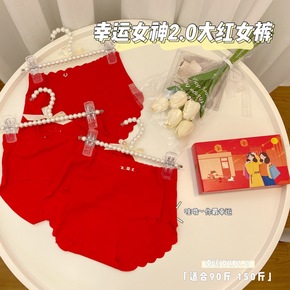 喜庆新年本命年大红内裤褶皱全棉舒适透气纯棉裆蝴蝶结...