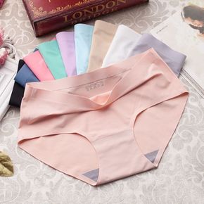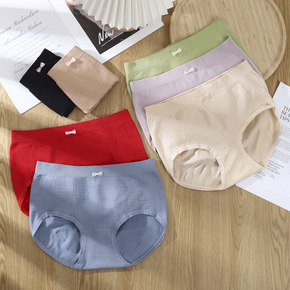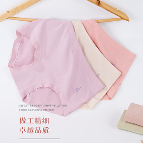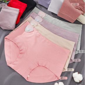 新款纯棉女士内裤女纯棉中腰三角裤纯色中腰抗菌舒适透...