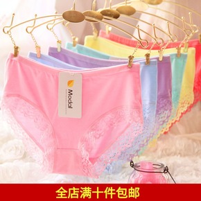 透气柔软性感竹纤维蕾丝内裤女学生莫代尔少女三角低腰...