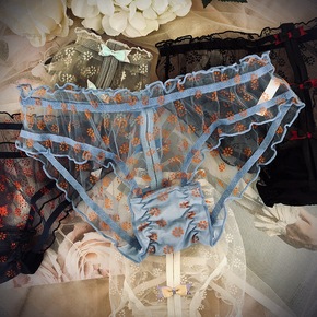日系性感少女刺绣低腰诱惑镂空女士三角裤细带蝴蝶结透...