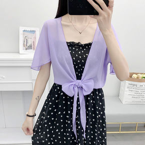 半袖披肩夏季配裙子短款大码雪纺开衫防晒衣女外搭薄款...
