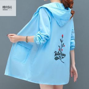 刺绣防晒衣女2021夏季新款大码宽松防晒服中长款外...