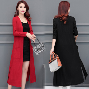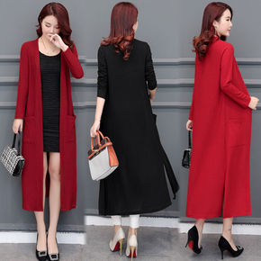 针织开衫女中长款过膝2019春秋新款大码女装百搭薄...