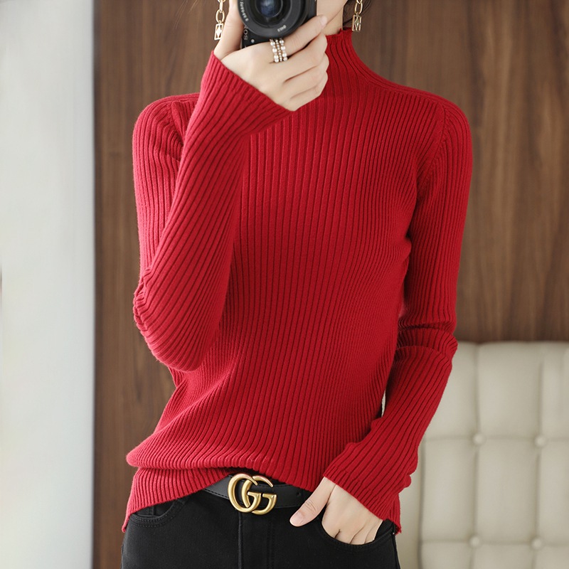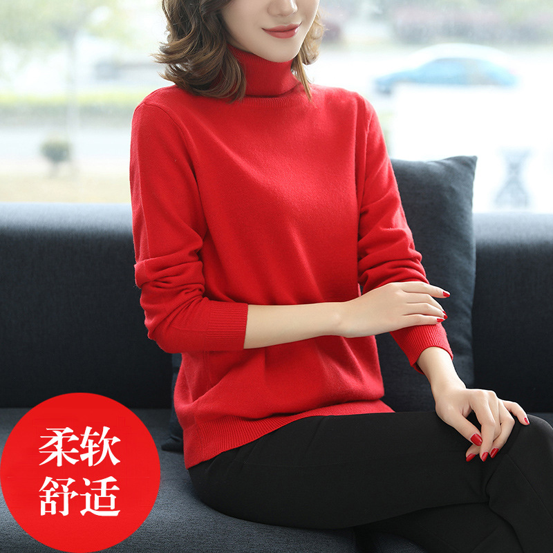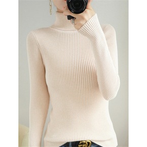 跨境女装一件代发春季高领薄款打底毛衣女长袖套头针织...
