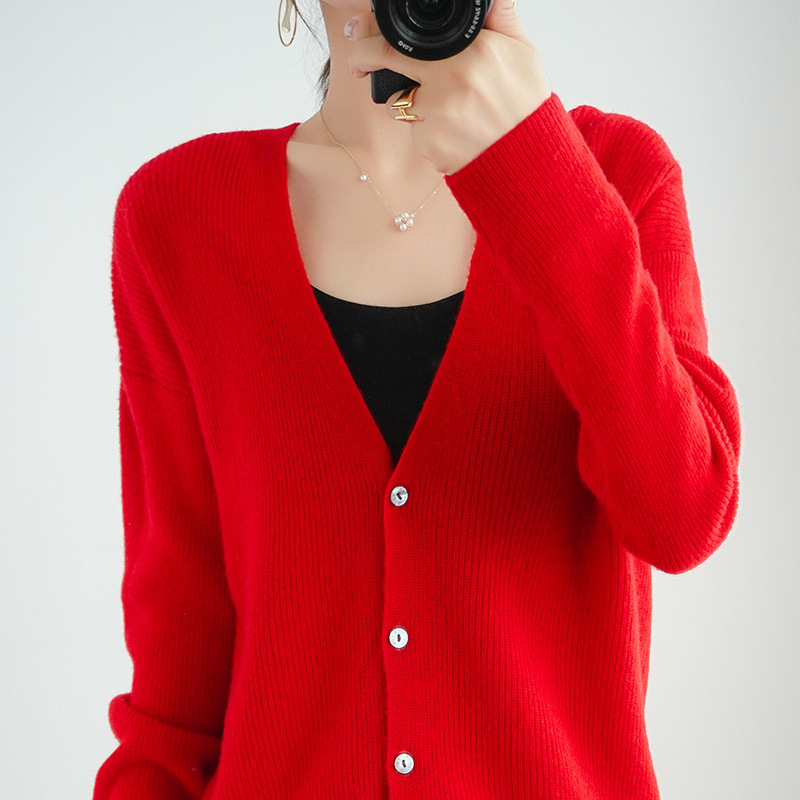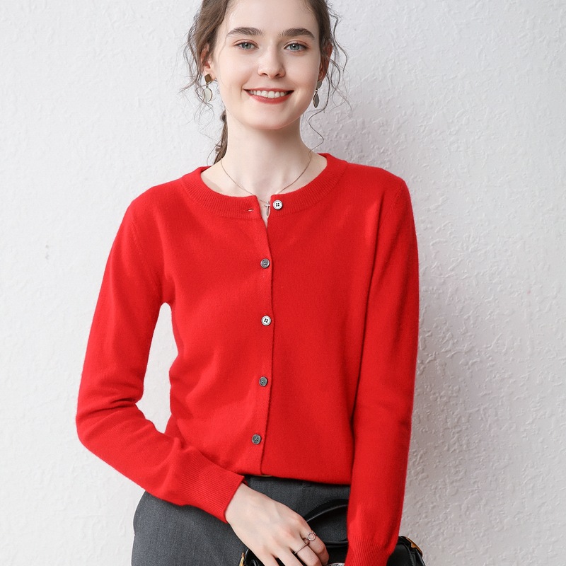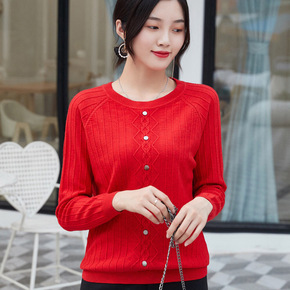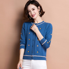 2021新款羊毛开衫女圆领短款毛衣针织外套宽松大码...