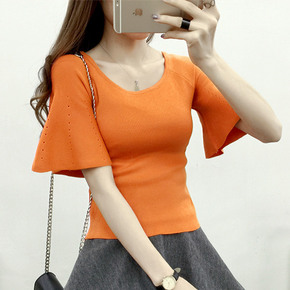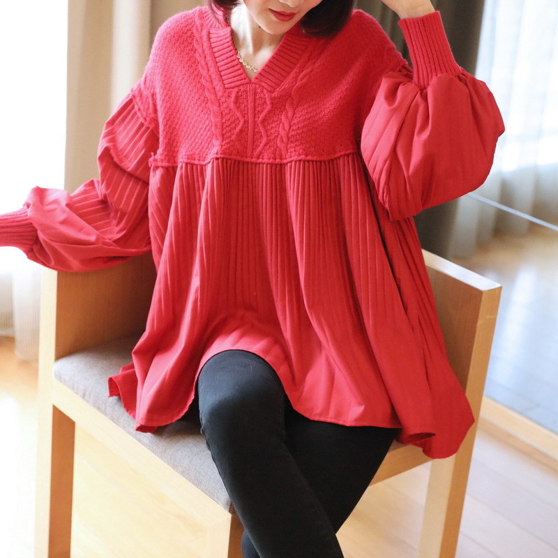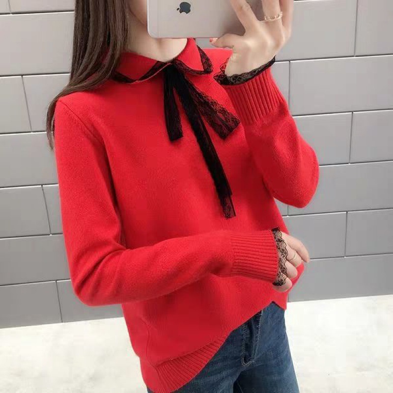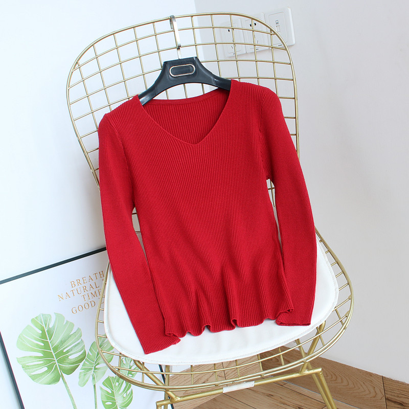 v领打底衫女韩版套头2021年春季洋气灯笼袖毛衣中...