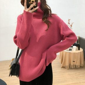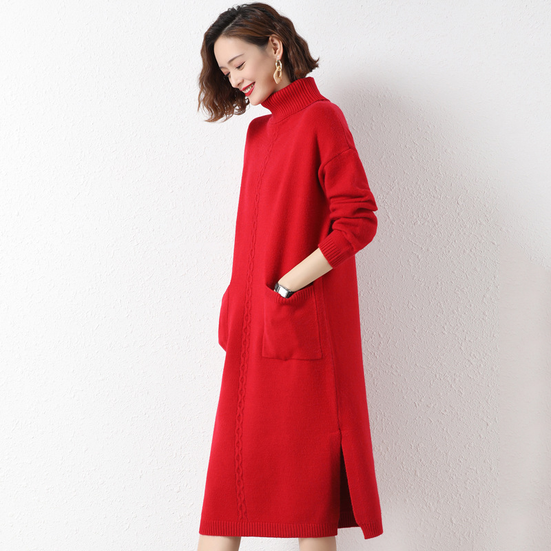 高领毛衣女长款秋冬过膝打底宽松针织衫女连衣裙...