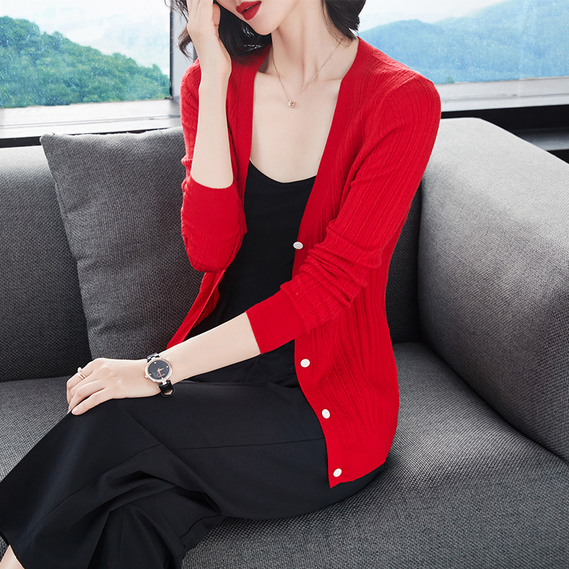 新款开衫毛衣女外套超短款百搭薄高腰外搭羊毛针织修身...