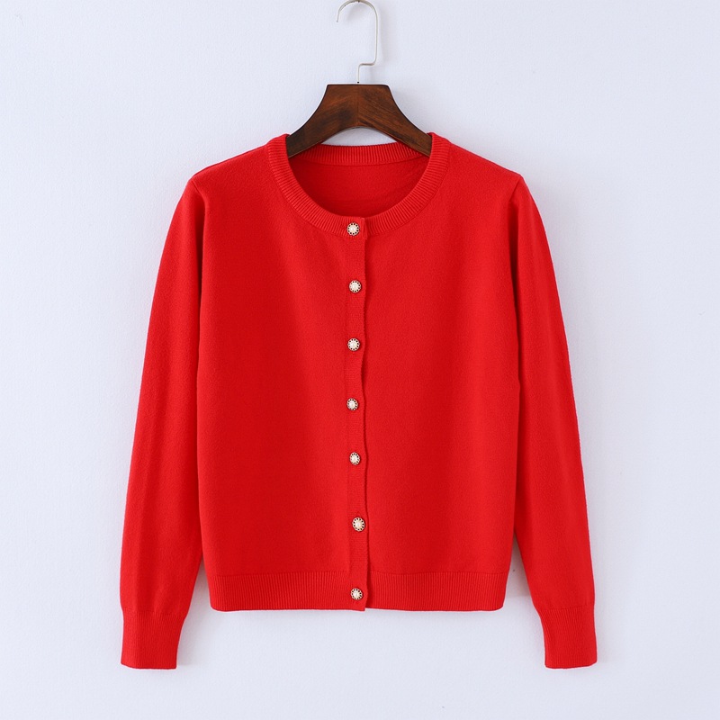 2021新款针织开衫女秋冬韩版宽松百搭圆领纯色外搭...