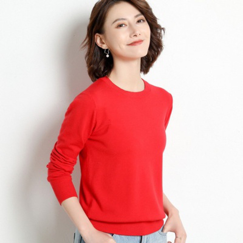 精纺圆领羊毛衫女套头毛衣针织打底衫秋冬季韩版修身内...
