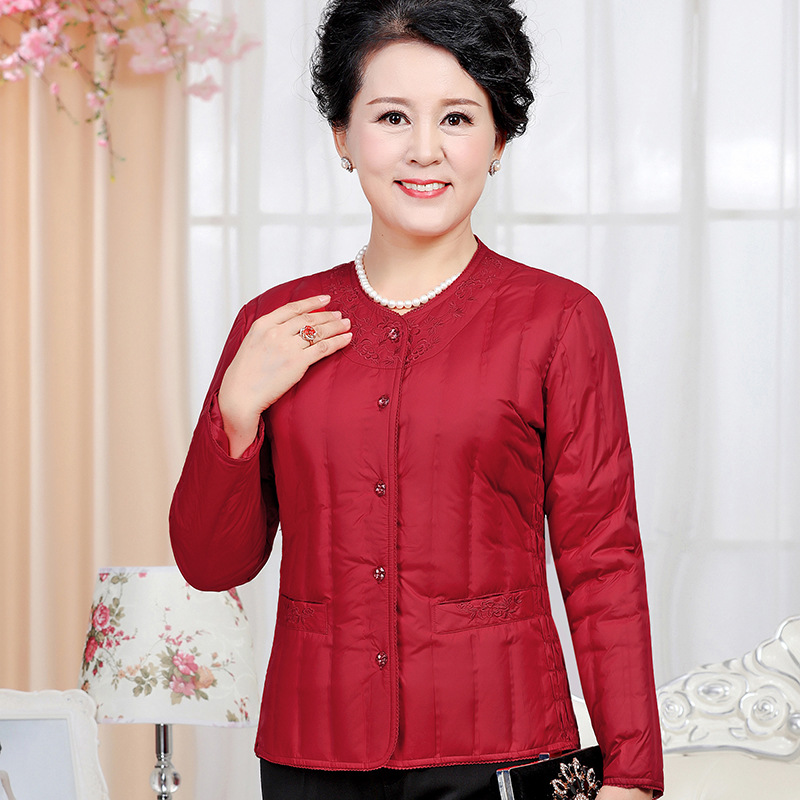 中老年大码贴身内穿轻薄款羽绒服胖妈妈装白鸭绒内胆女...