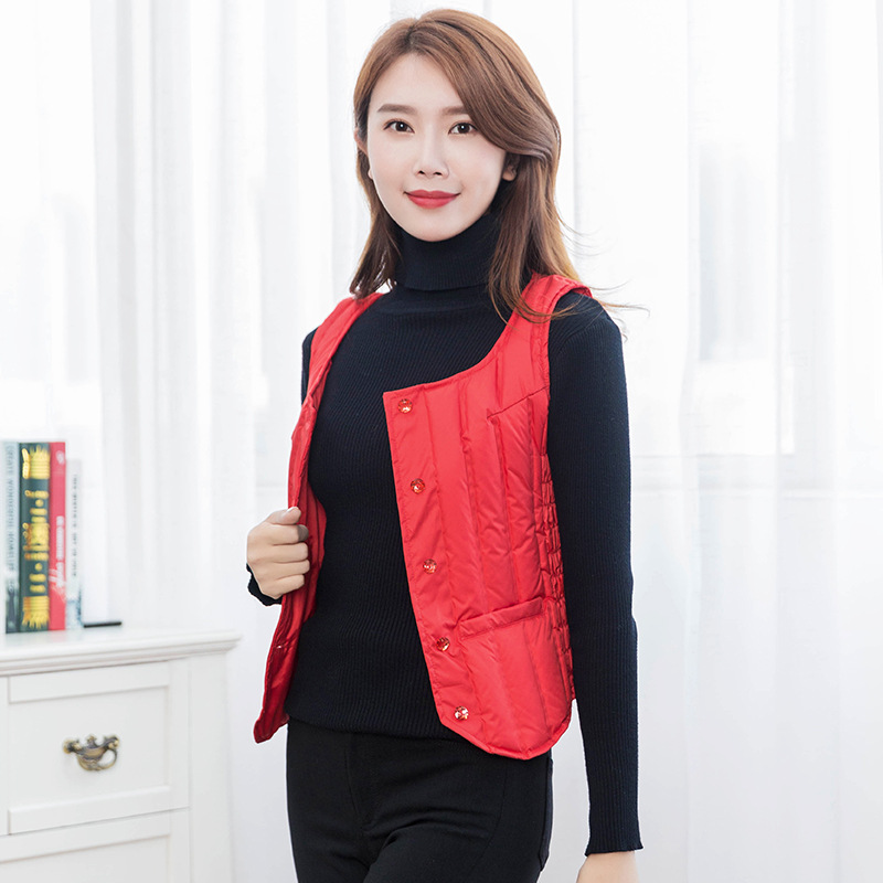 秋冬羽绒马甲女短款修身内穿保暖轻薄羽绒服背心马夹妈...