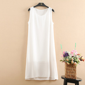 夏季新款韩版无袖雪纺连衣裙中长款大码宽松纯色双层背...