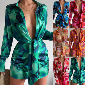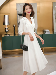 2022春夏跨境独立站新款气质V领女装长袖翻领A字...