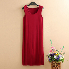 夏季莫代尔连衣裙无袖中长款过膝百搭大码胖mm吊带外...