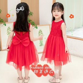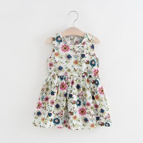 2021夏季新款儿童宝宝无袖印花连衣裙系带韩版女童...