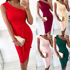 2022外贸跨境货源欧美女装一字肩长袖抹胸性感连衣...