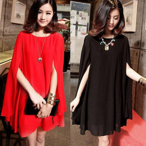 大码斗篷雪纺衫女沙滩裙夏季背心连衣裙A字裙女装蝙蝠...