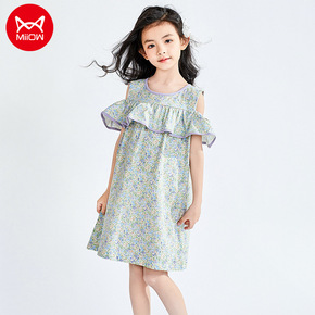 猫人童装2022年夏季新款女童短袖连衣裙薄款长裙女...
