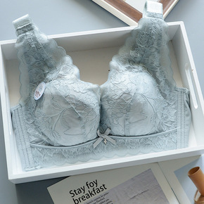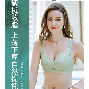 新款超薄蕾丝性感胖MM内衣女大胸显小无钢圈收副乳防...