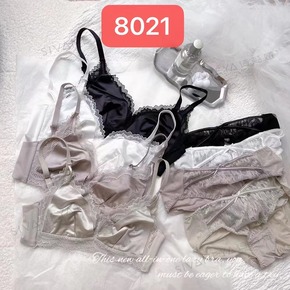 8021水晶杯蕾丝法式内衣大胸显小无钢圈超薄文胸套...