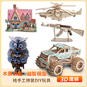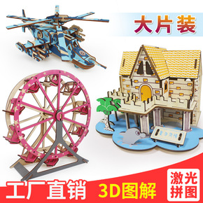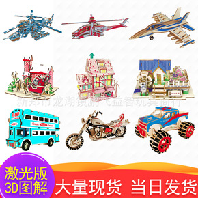 工厂热销3diy手工玩具木制建筑房子立体拼图模型中...